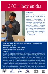 C/C++ es un lenguaje de programación muy utilizado en la actualidad debido a su eficiencia, velocidad y capacidad de bajo nivel. C fue desarrollado en la década de 1970 por Dennis Ritchie en los laboratorios Bell, y se convirtió en uno de los lenguajes de programación más influyentes en la historia de la computación. C++ fue desarrollado en los años 80 por Bjarne Stroustrup y es una extensión del lenguaje C. Hoy en día, C/C++ se utiliza en muchos sistemas embebidos, sistemas operativos y aplicaciones de alto rendimiento, como videojuegos y software de animación. También es ampliamente utilizado en la industria financiera, aeroespacial y de defensa. A pesar de su edad, C/C++ sigue siendo una herramienta importante para muchos programadores y empresas. En esta charla se discutirán estos diferentes aspectos desde la perspectiva de un desarrollador de C/C++.