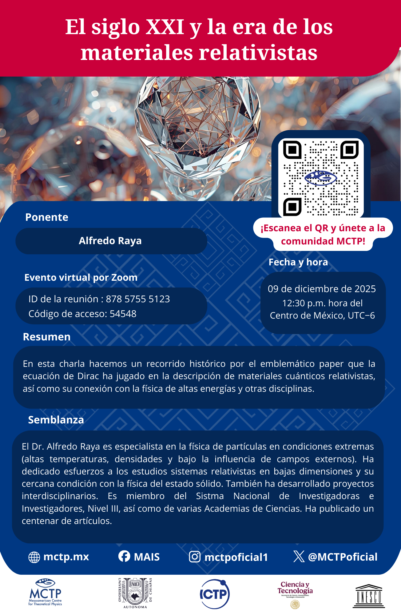 El Dr. Alfredo Raya es especialista en la física de partículas en condiciones extremas (altas temperaturas, densidades y bajo la influencia de campos externos). Ha dedicado esfuerzos a los estudios sistemas relativistas en bajas dimensiones y su cercana condición con la física del estado sólido. También ha desarrollado proyectos interdisciplinarios. Es miembro del Sistma Nacional de Investigadoras e Investigadores, Nivel III, así como de varias Academias de Ciencias. Ha publicado un centenar de artículos.