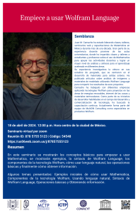 En este seminario se mostrarán los conceptos básicos para empezar a usar Mathematica, se mostrarán ejemplos, la sintaxis de Wolfram Language, los componentes de la tecnología Wolfram, cómo usar lenguaje natural, las operaciones básicas y finalmente cómo obtener información.