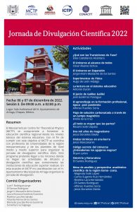 El Mesoamerican Centre for Theoretical Physics (MCTP) se compromete a fomentar la educación científica regional desde los niveles básicos del sistema educativo. Con el fin de cumplir con este objetivo el MCTP se coordina con profesores de Universidades de la región mesoamericana y de los planteles de nivel medio y medio superior para organizar la jornada de divulgación científica 2022. Este programa pretende llegar a los rincones donde no llegan las actividades de difusión y divulgación científica que comúnmente las instituciones de educación superior realizan.