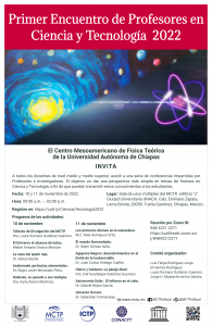 Lugar: Sala de usos múltiples del MCTP, edificio “c” Ciudad Universitaria UNACH. Calz. Emiliano Zapata, Loma Bonita, 29050. Tuxtla Gutiérrez, Chiapas, México.