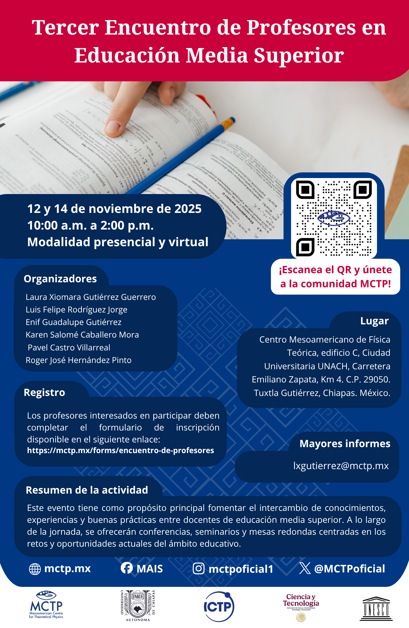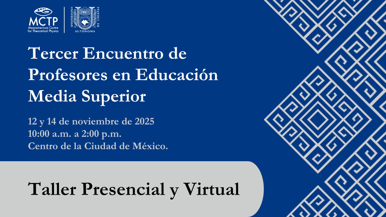 Lugar: Centro Mesoamericano de Física Teórica, edificio C, Ciudad Universitaria UNACH, Carretera Emiliano Zapata, Km 4. C.P. 29050. Tuxtla Gutiérrez, Chiapas. México.