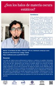 El Prof. Juan Barranco Monarca nacido en la ciudad de Puebla en 1977. Estudió la Licenciatura en Física en la Universidad de las Américas-Puebla, la maestría y el doctorado en Ciencias con especialidad en Física en el Centro de Investigación y Estudios Avanzados del IPN (CINVESTAV-IPN). Realizó estancias posdoctorales en el Instituto de Física de la UNAM, el Instituto Max Planck de Física Gravitacional en Alemania, en el Instituto de Astronomía de la UNAM y actualmente es profesor de tiempo completo en el Departamento de Física de la División de Ciencias e Ingenierías de la Universidad de Guanajuato. Sus temas de investigación son la física de partículas elementales, materia oscura y astropartículas.